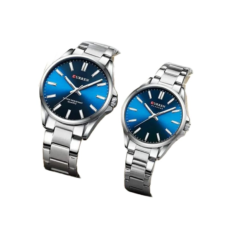 Curren 9090 Couple Quartz Stainless Steel Analog Watch (Silver Blue)
