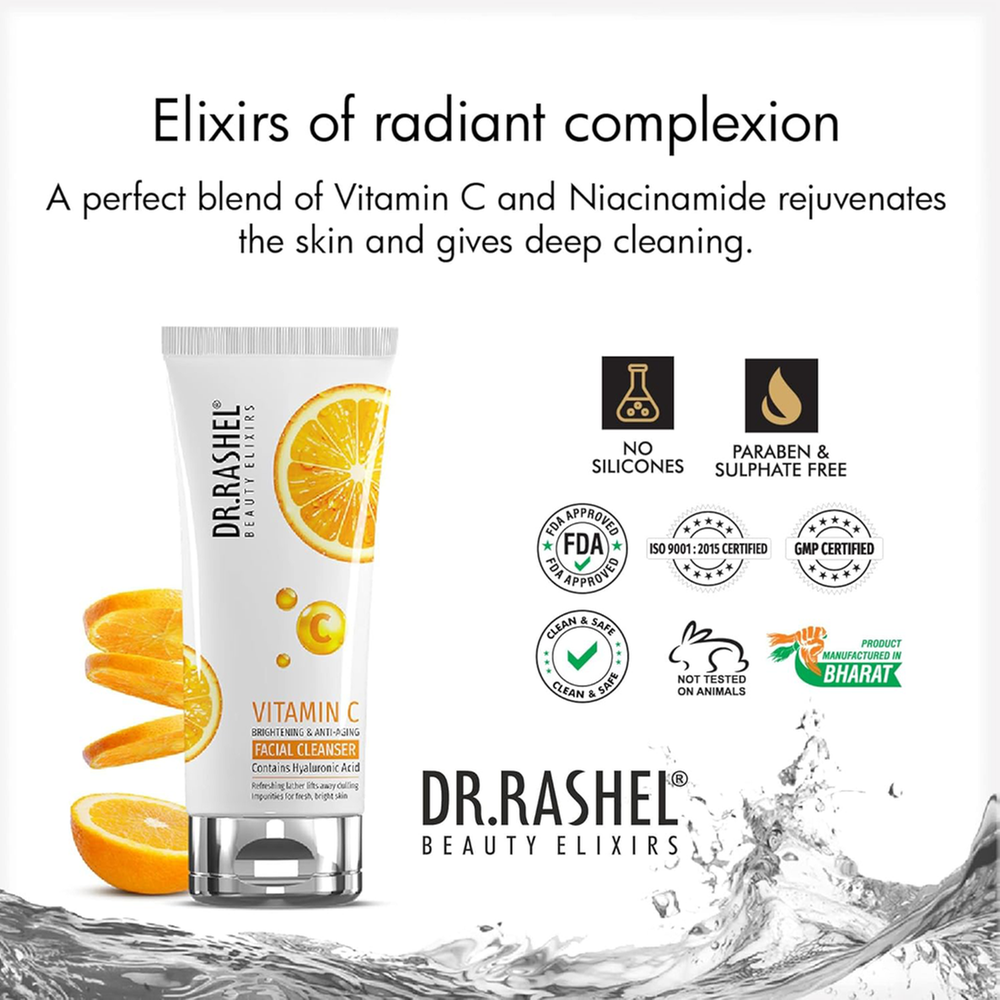 Dr. Rashel Vitamin C Facial Cleanser ত্বককে গভীরভাবে পরিষ্কার করতে এবং ত্বকের উজ্জ্বলতা বাড়াতে সাহায্য করে। এতে থাকা Vitamin C ত্বকের ডার্ক স্পট কমাতে সহায়তা করে এবং ত্বকের টোনকে আরও পরিষ্কার ও সমান করতে সাহায্য করে।