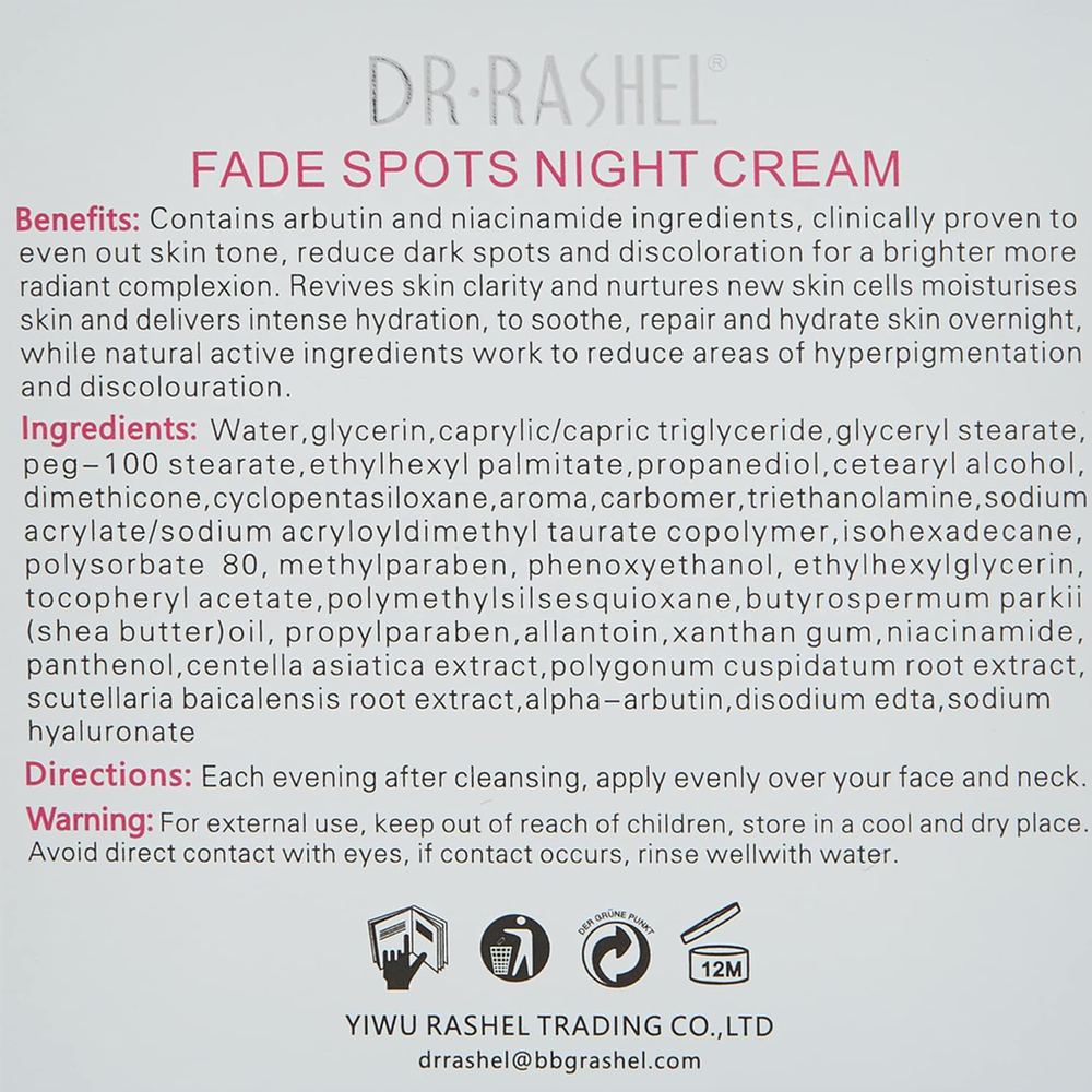 Dr. Rashel White Skin Fade Spots Night Cream – 50gm