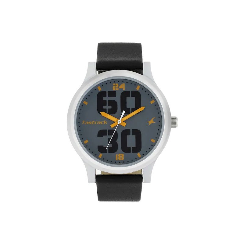 Fastrack NM38051SL03 Bold Grey Dial Black Leather Strap Men’s Watch