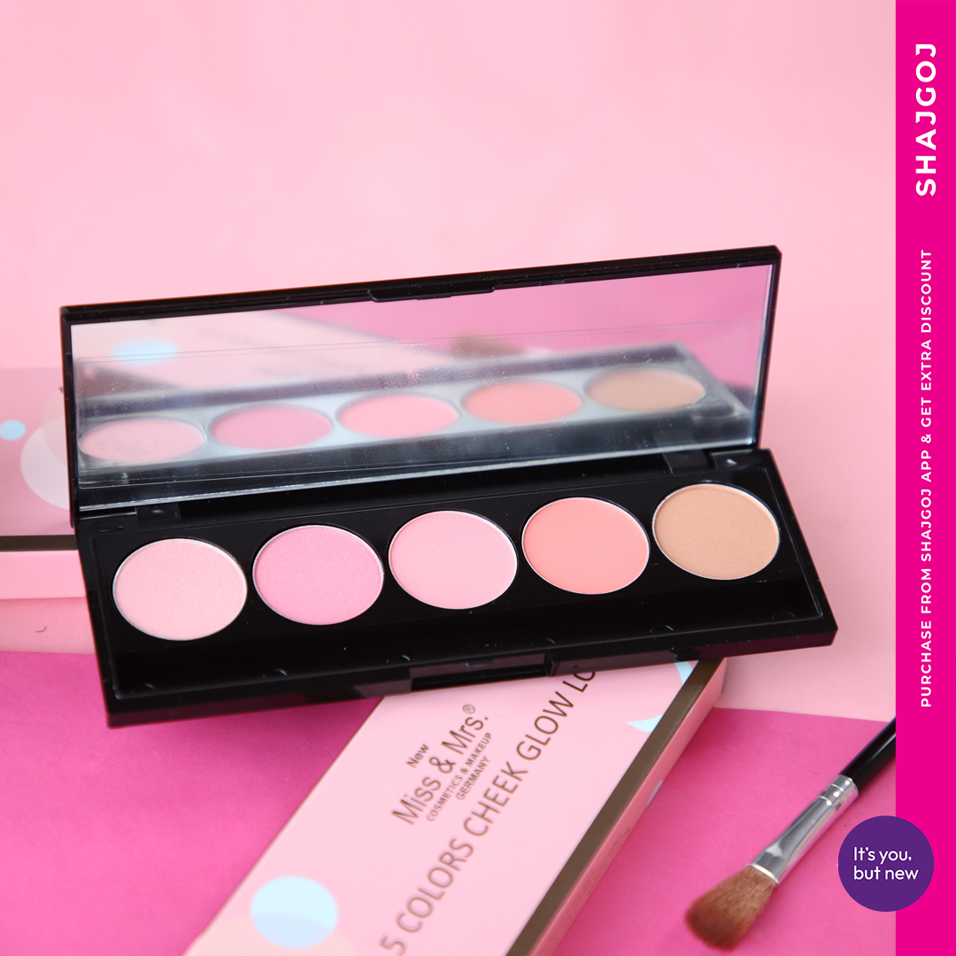 Miss & Mrs Nina 5 Colors Cheek Glow Looks Palette একটি মাল্টি-শেড ব্লাশ প্যালেট যেখানে রয়েছে ৫টি সুন্দর রঙের শেড। এই প্যালেটটি গালে ন্যাচারাল গ্লো দিতে, কনট্যুর করতে এবং ফেসকে আরও ডিফাইন করতে সাহায্য করে।