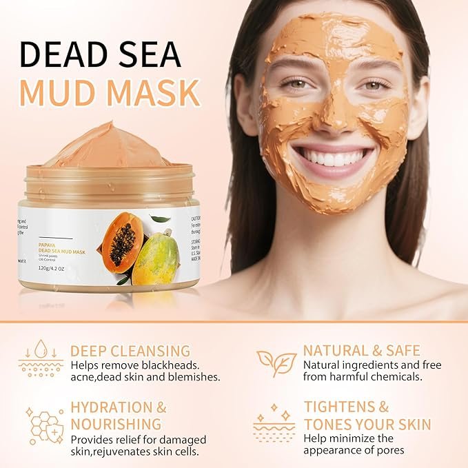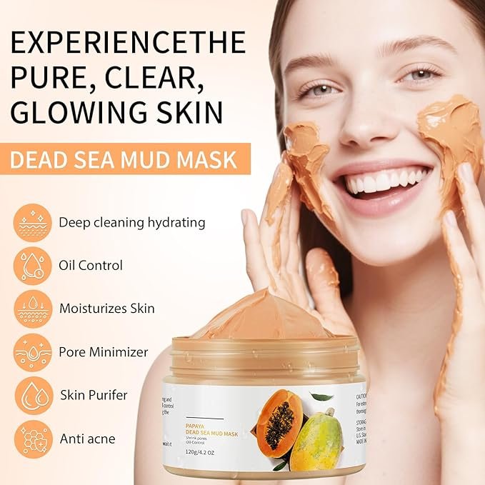Mooyam Papaya Dead Sea Mud Mask একটি কার্যকর স্কিন কেয়ার মাস্ক যা ত্বকের গভীরে জমে থাকা ময়লা, অতিরিক্ত তেল ও ডেড স্কিন পরিষ্কার করতে সাহায্য করে। এটি ত্বককে ডিটক্স করে, পোরস পরিষ্কার করে এবং ত্বককে করে তোলে উজ্জ্বল, ফ্রেশ ও মসৃণ।