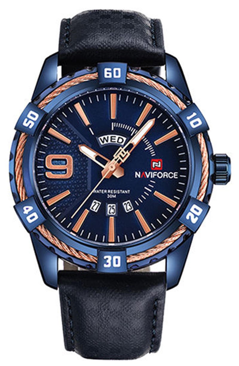 Naviforce NF9117 Black PU Leather Analog Watch for Men – Royal Blue & Black