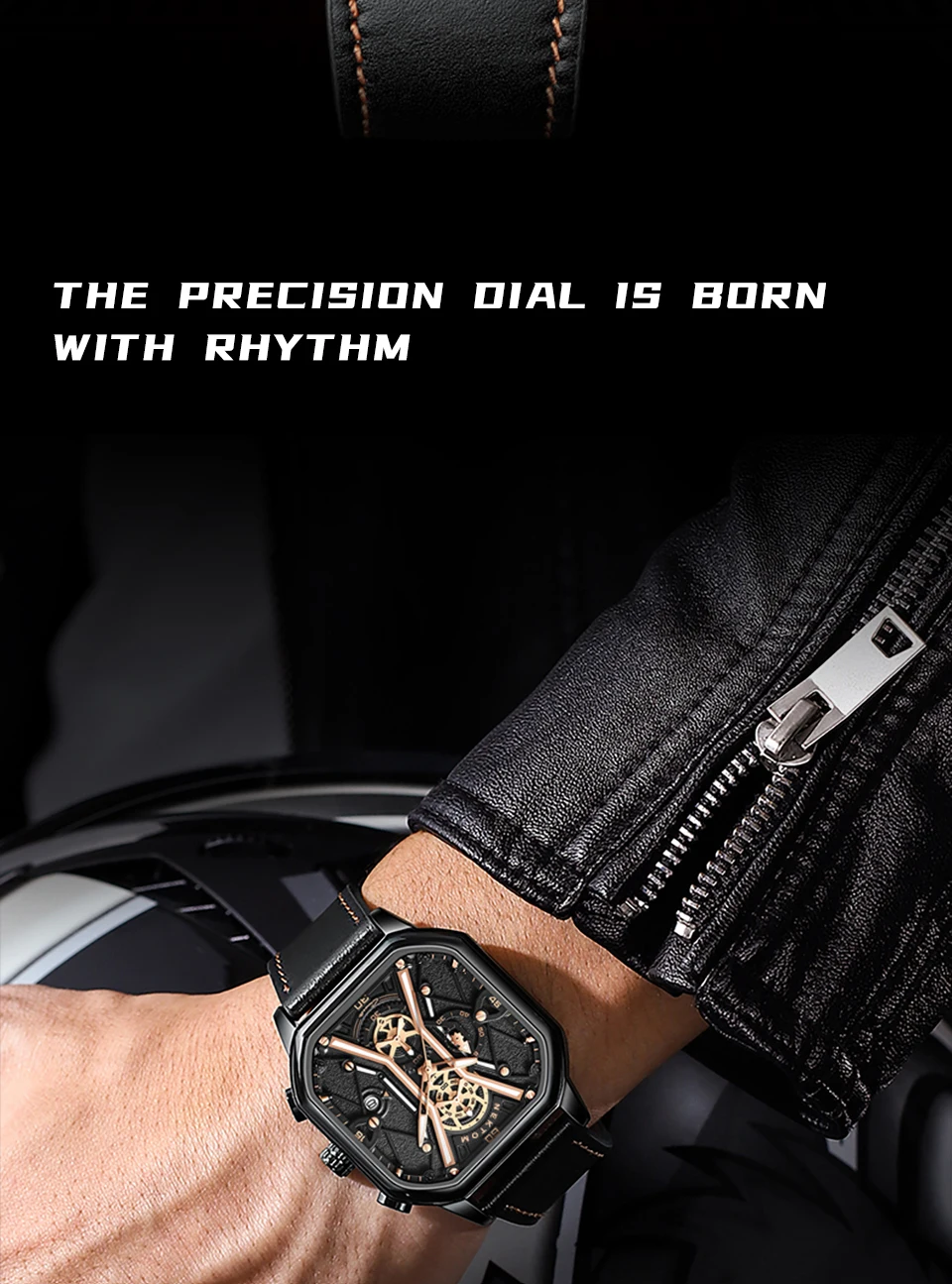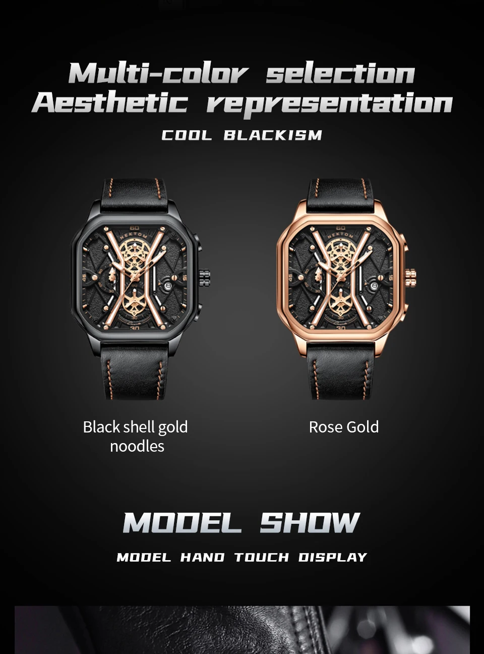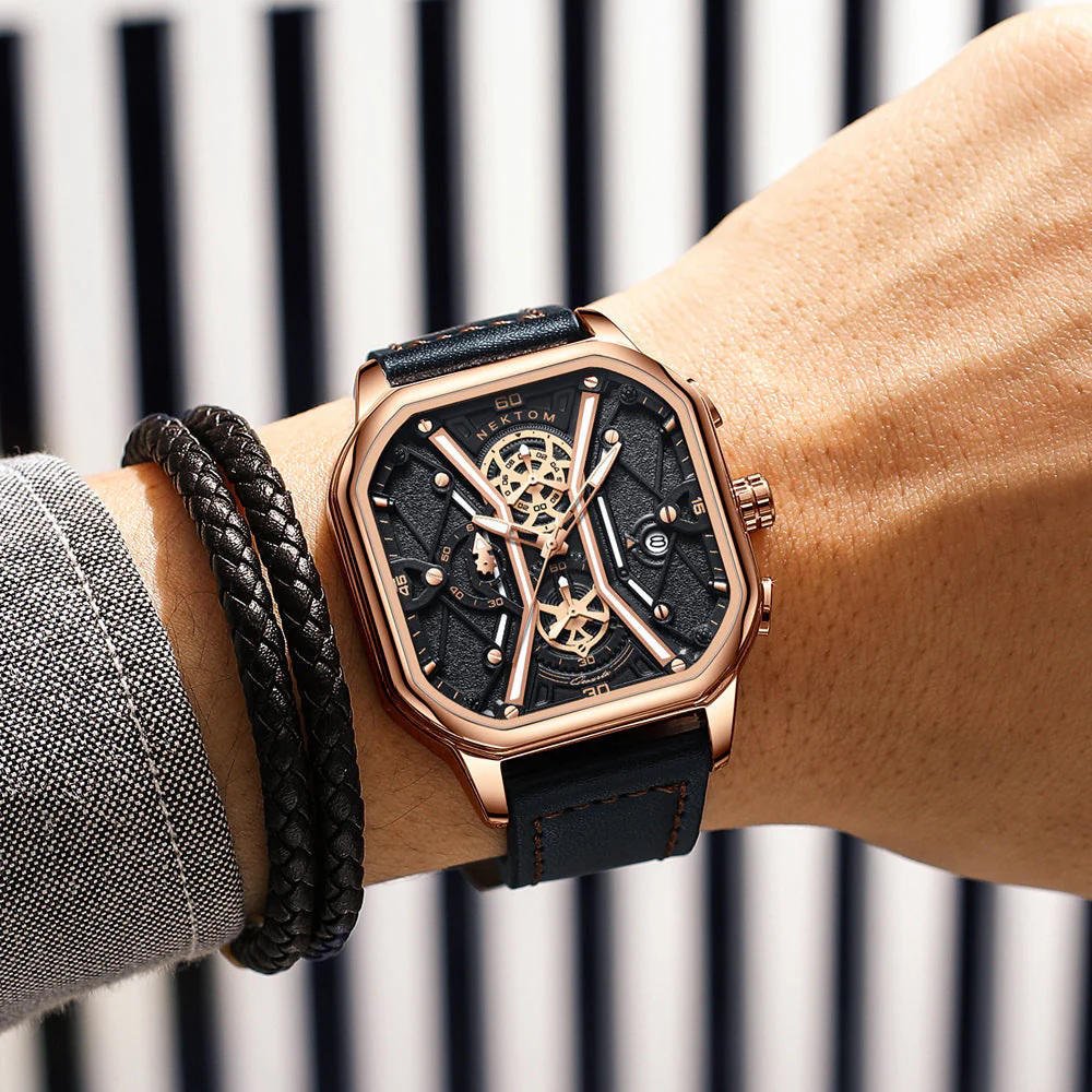 Nektom 8238 Leather Multifunctional Watch for Men – Gold