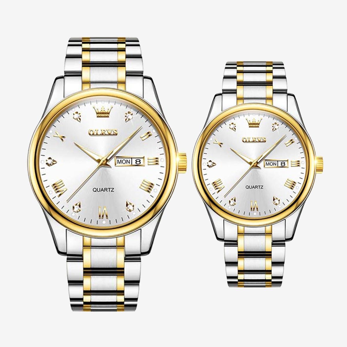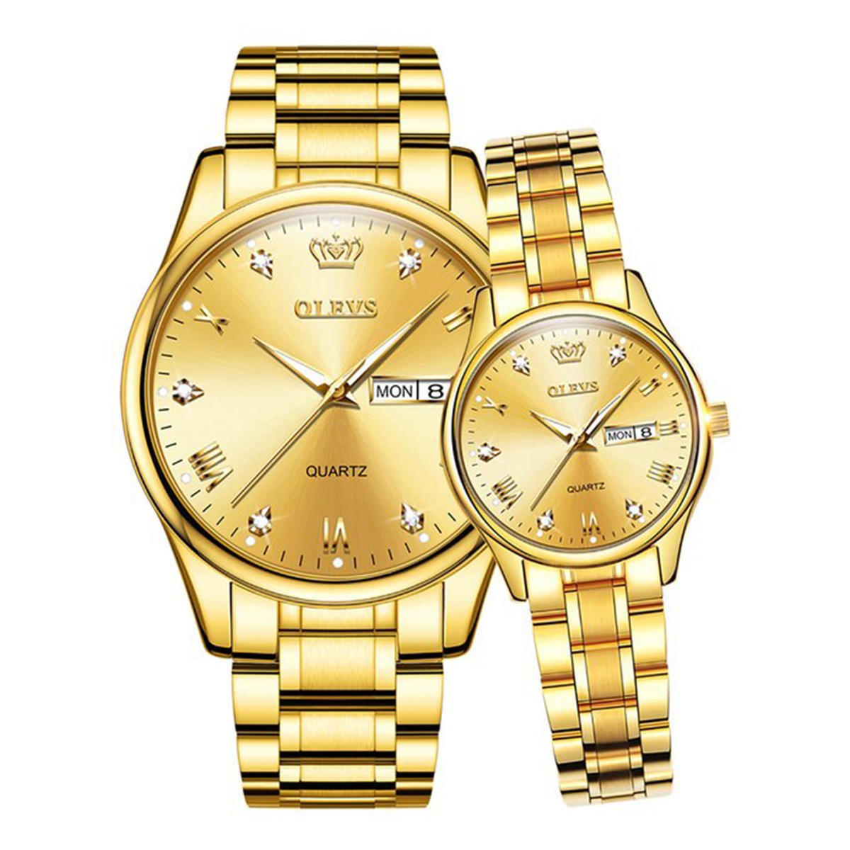 OLEVS 5563 Quartz Stainless Steel Analog Wrist Watch For Couple