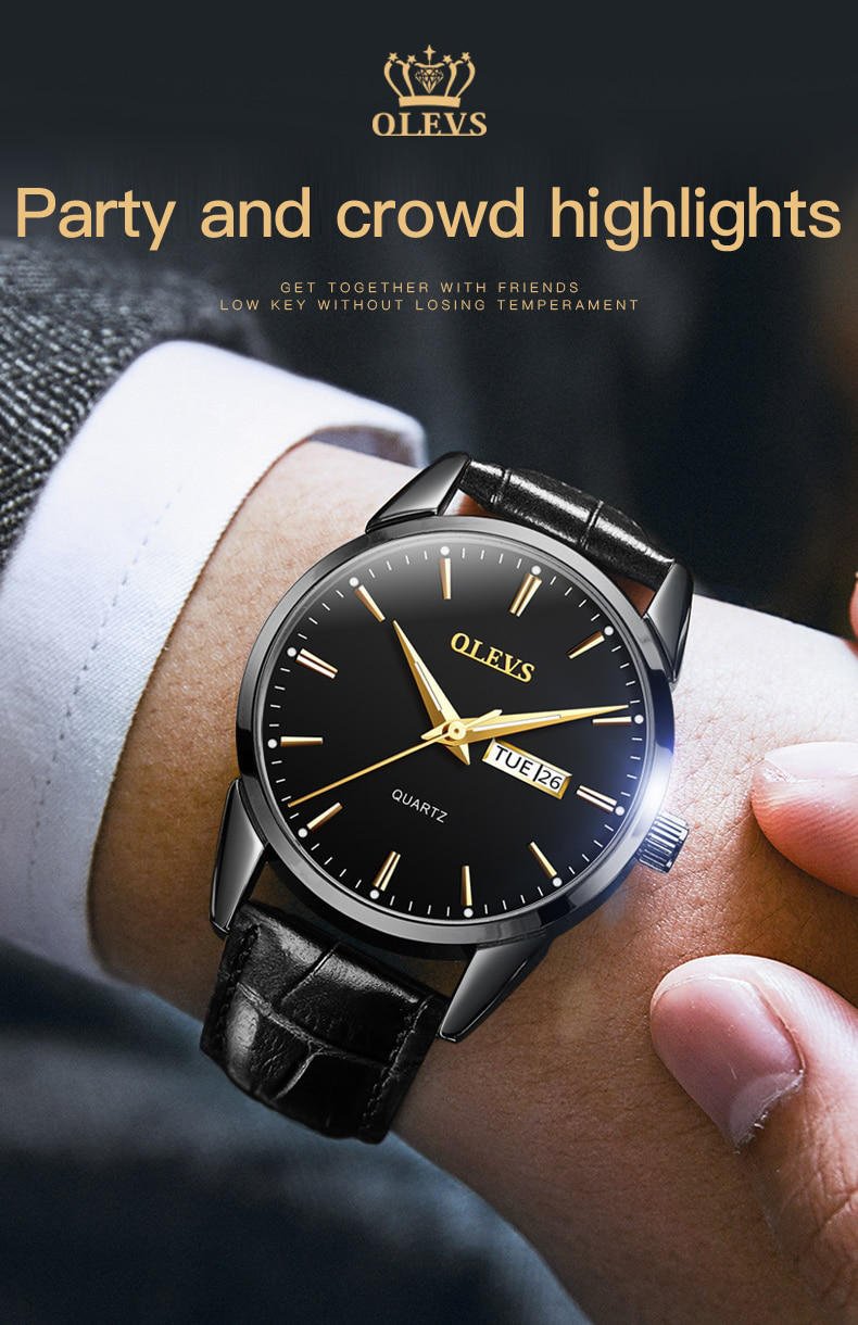 OLEVS 6898 Black PU Leather Analog Watch For Men – Black