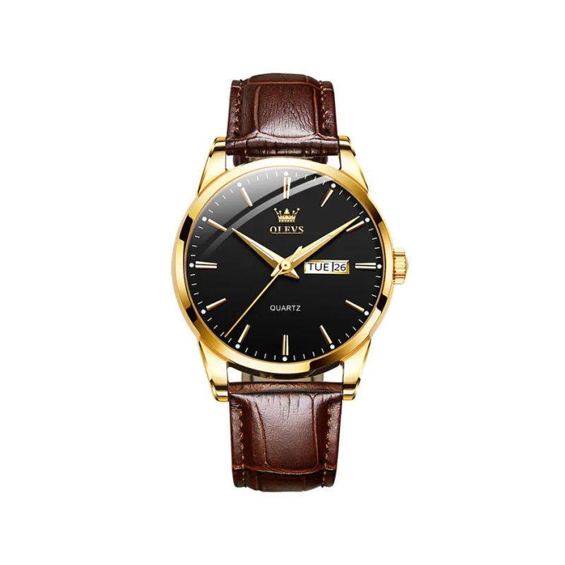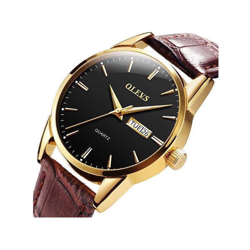 Olevs 6898 Luxury Leather Strap Quartz Men’s Watch – Brown Black