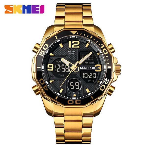 গোল্ড ফিনিশ ও পাওয়ারফুল ডিজাইনের Skmei 1649 Men’s Watch একসাথে দেয় লাক্সারি লুক ও মাল্টি-ফাংশন সুবিধা। ডিজিটাল + অ্যানালগ স্টাইলের এই ঘড়িটি ডেইলি ব্যবহার ও স্পোর্টি লুকের জন্য দারুণ।