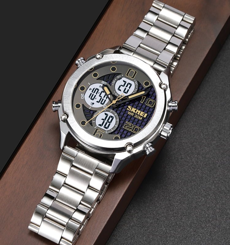 স্টাইলিশ চেইন স্ট্র্যাপ ও অ্যানালগ + ডিজিটাল কম্বিনেশনে তৈরি SKMEI 1975 Multifunction Watch। স্পোর্টি লুক ও মাল্টিফাংশন ফিচারের কারণে এটি ডেইলি ব্যবহার ও আউটডোর অ্যাক্টিভিটির জন্য দারুণ পছন্দ।