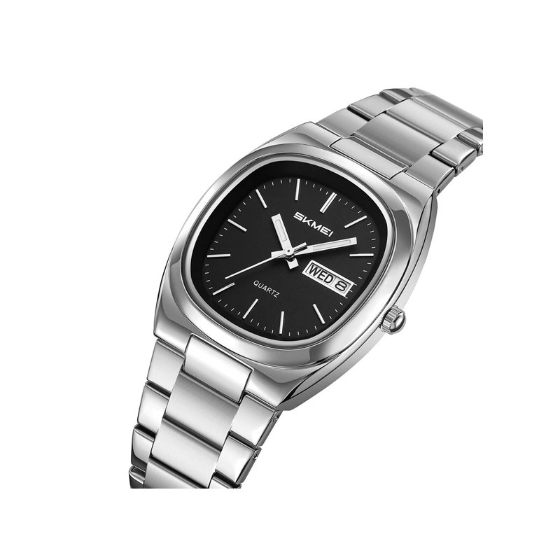 Skmei 2420 Stainless Steel Strap Analog Quartz Watch for Men- Silver Black