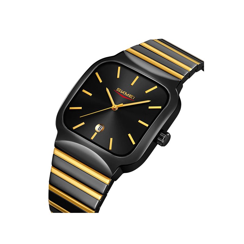 Skmei 9361 Square Quartz Watch for Men- Gold Black